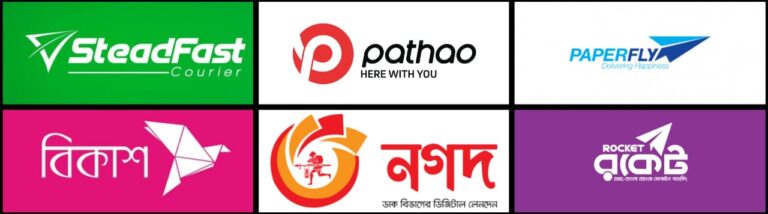 আমরা সম্পূর্ণ বাংলাদেশ জুড়ে ডেলিভারি দিয়ে থাকি। ডেলিভারি চার্জ : ঢাকা সিটি ৬০টাকা ও ঢাকার বাহিরে ১০০টাকা। ডেলিভারি টাইম ঢাকা ও আসে পাশে ১-২ দিন। ঢাকার বাহিরে ২-৩ দিন।